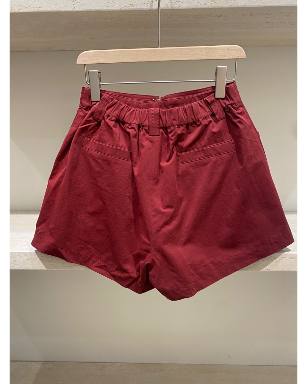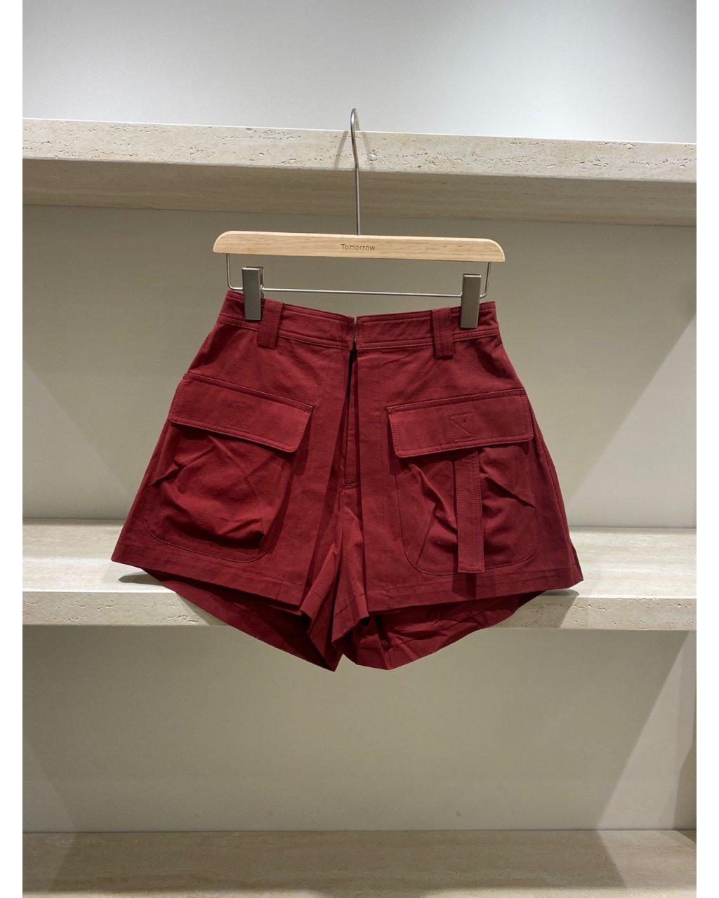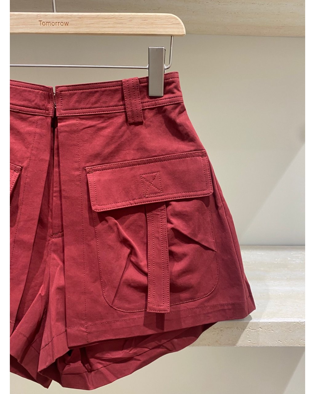 挺身棉質布料,高腰 A 字短褲剪裁顯腿長又遮大腿,左右立體大口袋好有工裝感,紅色穿上身好顯白亦夠搶眼。