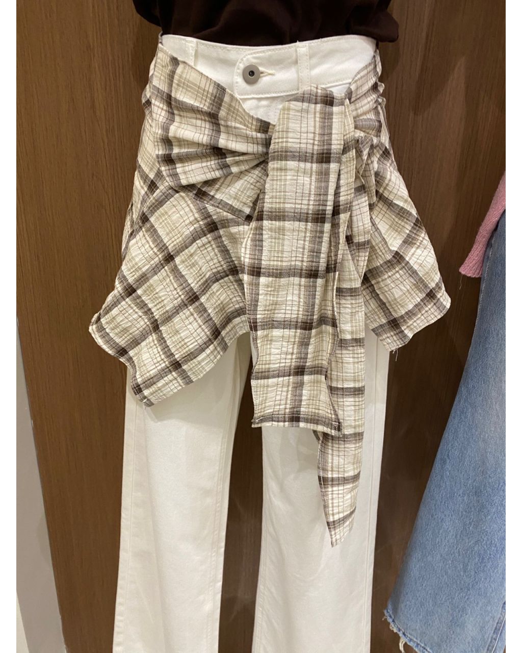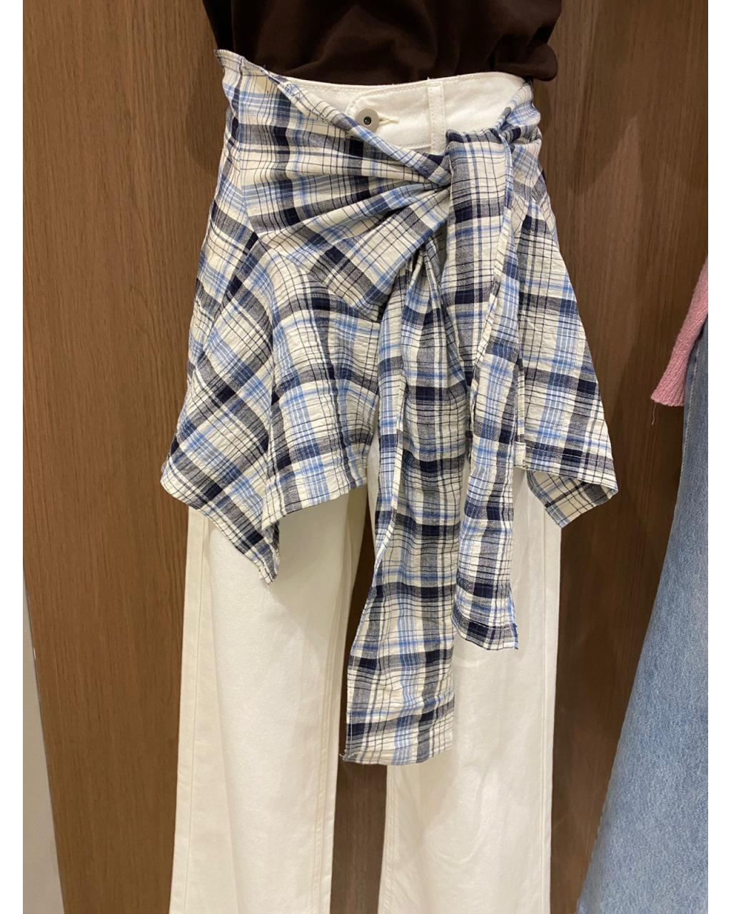 薄身棉質格仔布做成綁腰設計,好似將恤衫綁喺腰間咁但唔會加厚度,藍格同米格配牛仔褲或白色長褲都好有層次感,春夏用嚟加啲造型感好方便。