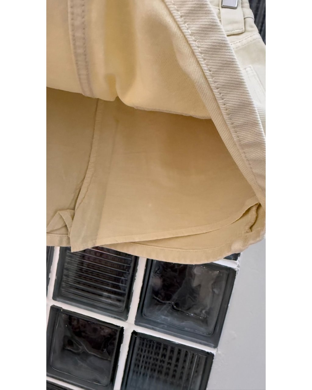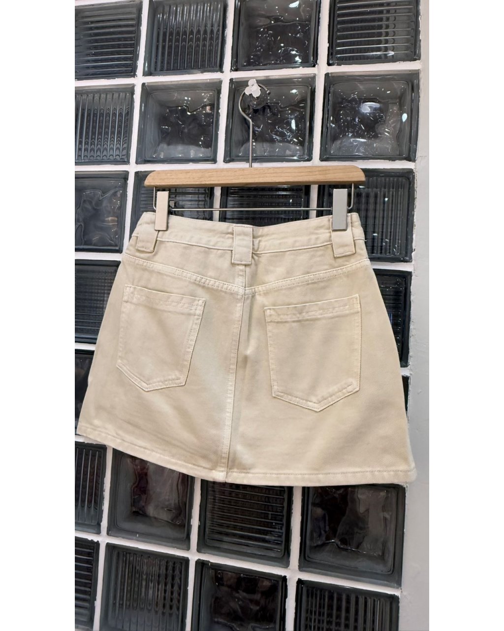 米白色挺身 denim 質地做成 A-line 迷你裙,上身好顯腿長又易襯色,前幅雙鈕扣同斜插袋設計有少少工裝味,但顏色又好甜美。內裏有同色安全褲設計,行路、上落樓梯都唔怕曝光,春夏配 T 恤、背心或者針織小外套都超好看。