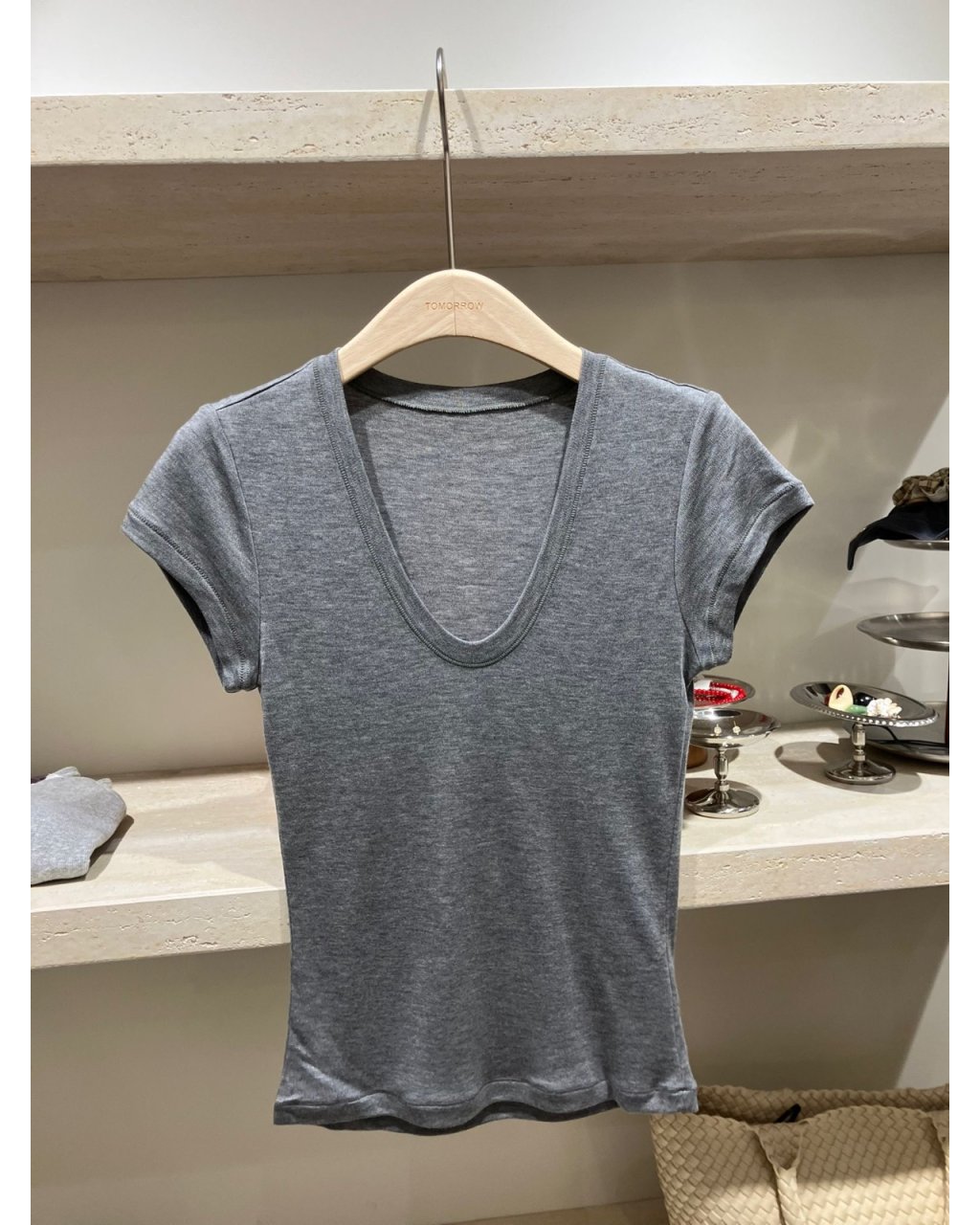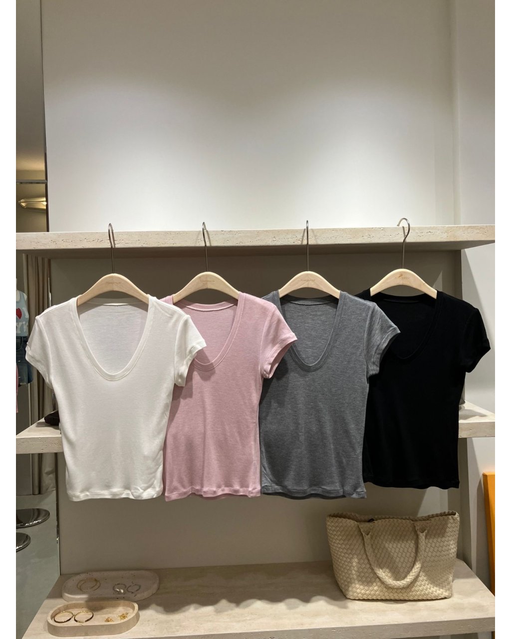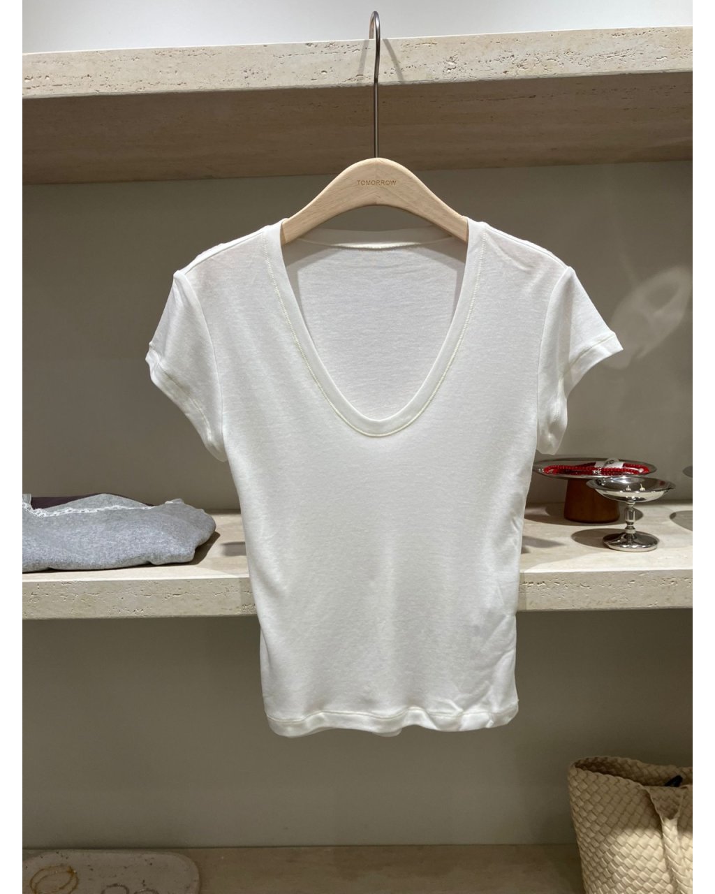 軟熟彈性棉質,貼身但唔焗身,單穿就已經好顯身形。大 V 領設計可以修飾鎖骨同頸線,又不會太低胸,日常着都好舒適。短身剪裁啱啱好落到褲頭位置,配高腰牛仔褲、半身裙或者闊腳褲,比例即刻拉長,簡簡單單就做到韓系休閒感。