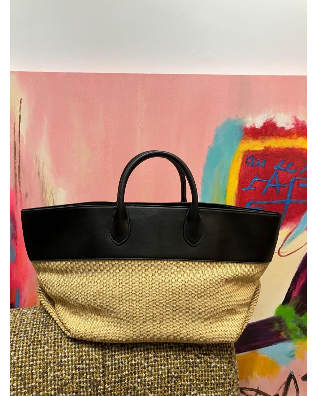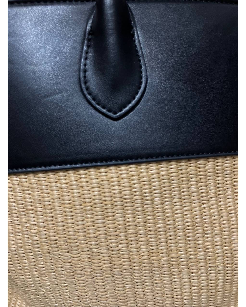 上半部及手挽位用上光澤感靚嘅 真皮拼接,下半部係質感細緻嘅藤編紋理,成個袋好有夏日度假感之餘又帶少少高級感。袋身容量夠大,可以放銀包、電話、水樽同小化妝袋,做 daily bag 或者出街 brunch、旅行都好實用。黑色皮拼米色藤編,易襯又耐看,配牛仔褲、連身裙或闊腳褲都好靚。