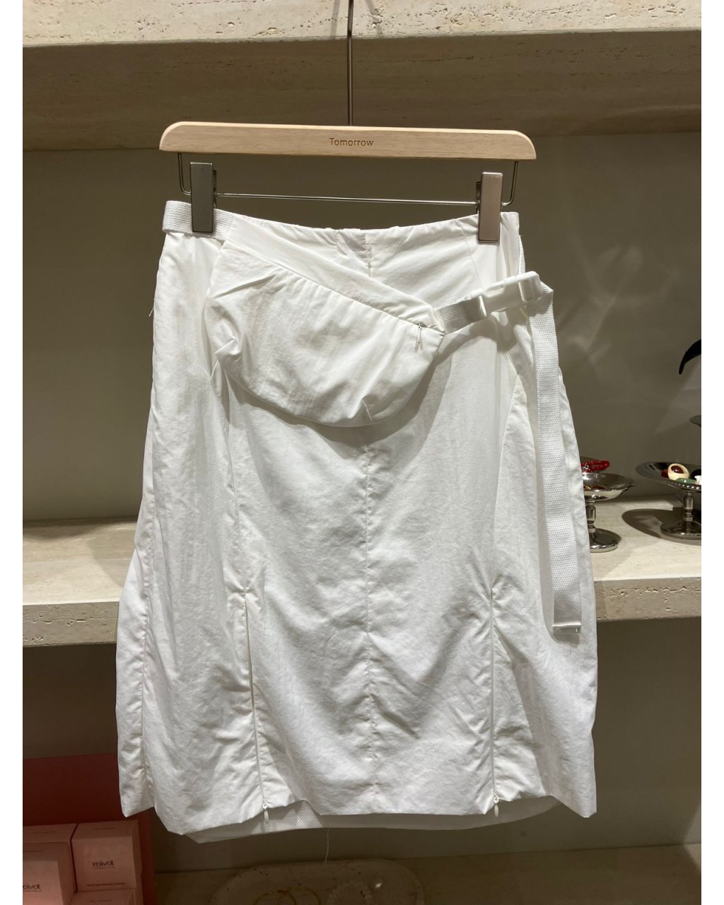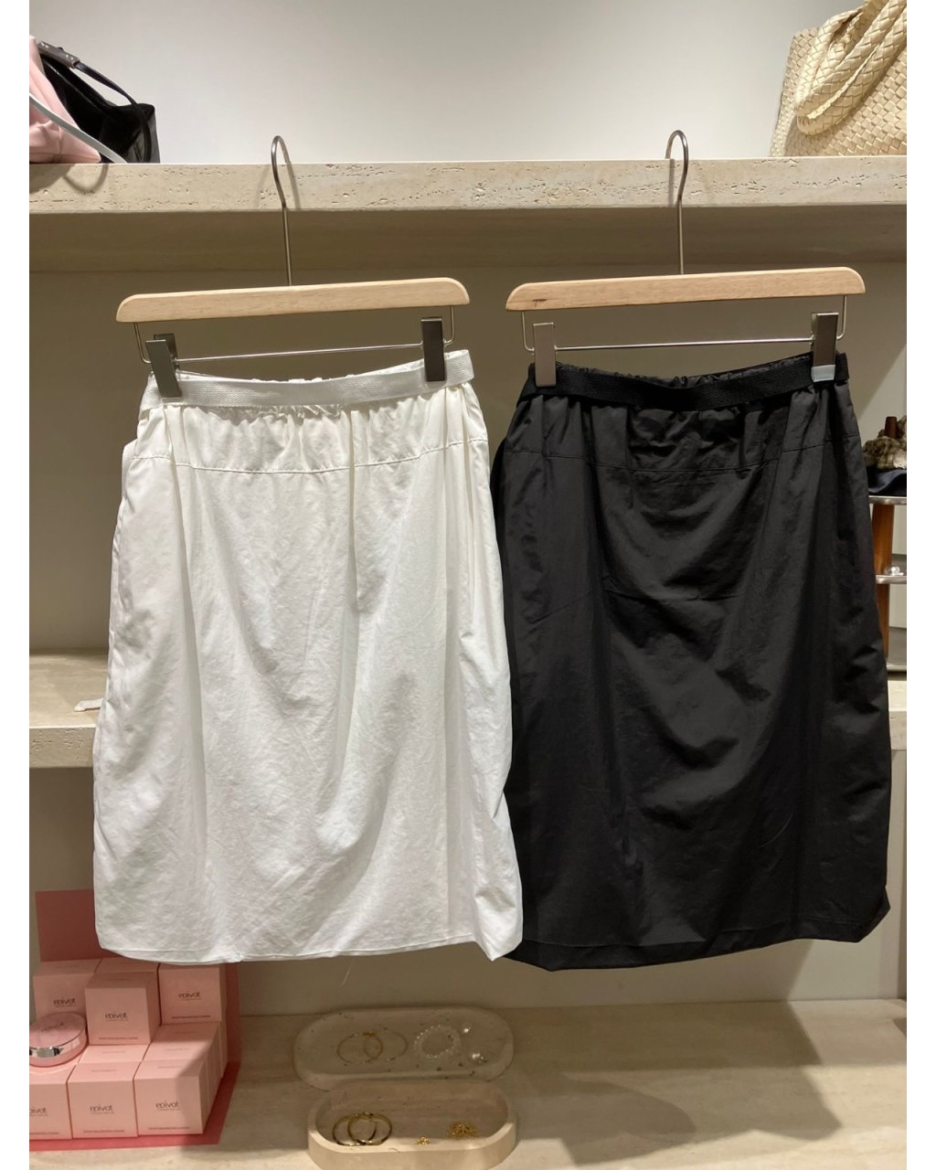 輕身布料加上前幅不規則打摺及疊層設計,令裙身有自然立體感但不會肥腫。中高腰設計,腰位有少少彈性,FREE SIZE 由 26–30” 都可以穿。長度約膝下位置,易襯又顯瘦,白色仙氣、黑色型格,襯簡單 tee 或背心已經好有造型。