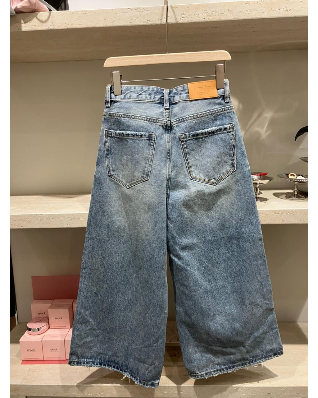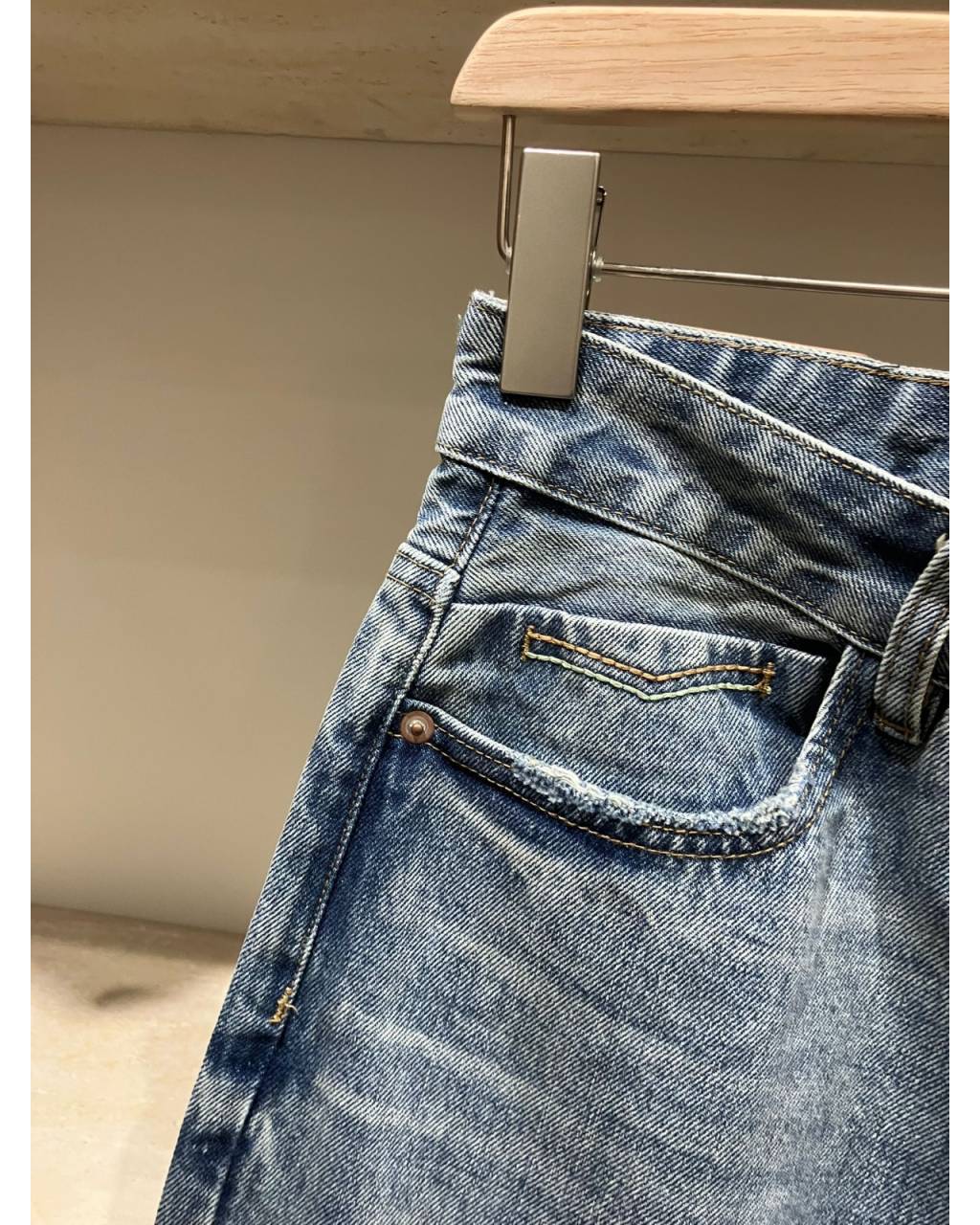 中偏淺藍復古刷色,配上微高腰闊腳剪裁,型格又有 90s 味道。大腿位置輕微猫鬚+洗水效果,令牛仔質感更突出,7 分褲長度露出腳踝位置,對比例同腿型都好友善,配波鞋、涼鞋都好睇。