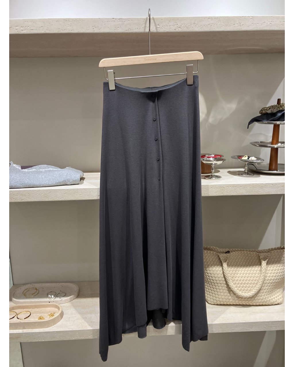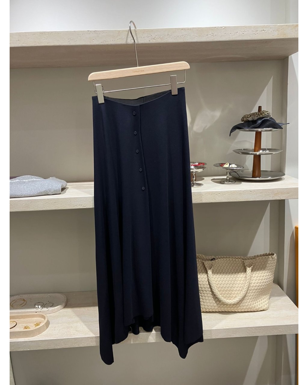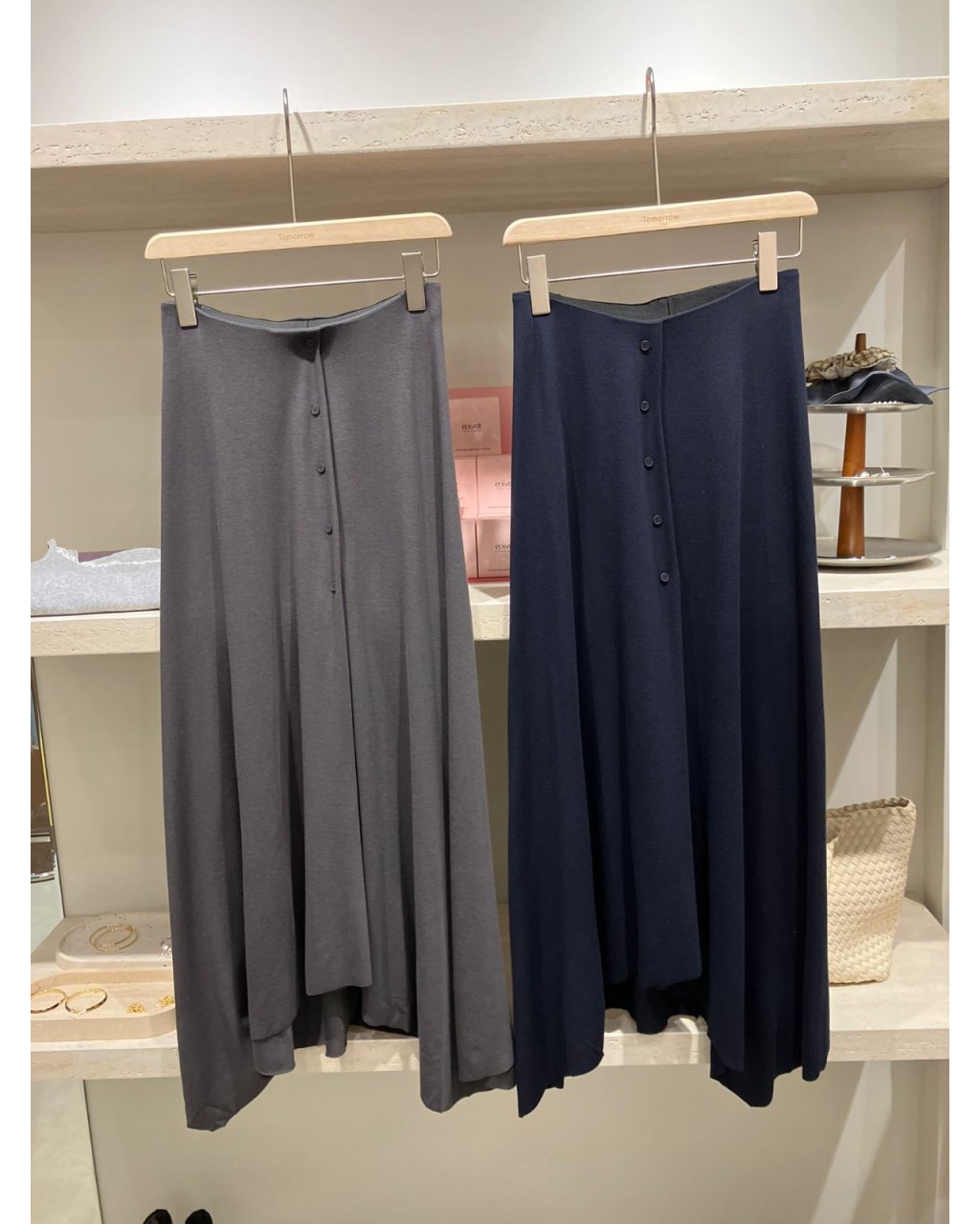 超順滑垂墜面料,行路會自然擺動,舒舒服服但好顯瘦。高腰 A 字剪裁 覆蓋到小肚肚同大腿位,前幅一排鈕扣設計令條裙更有縱向線條。深灰穩重易襯,深藍帶少少文青感,襯 T 恤或背心已經好靚。